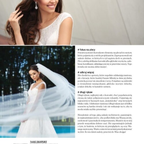 Kreacje z naszego salonu pojawiły się również w prestiżowym magazynie Wedding, a redakcja Panny Młodej zaprosiła nas do rozmowy o tym, od czego zacząć poszukiwania idealnej sukni ślubnej i czym warto kierować się przy jej wyborze. Te publikacje są dla nas nie tylko wyróżnieniem, ale też potwierdzeniem, że pasja, jakość i osobiste podejście, które towarzyszą nam w codziennej pracy, są zauważane i doceniane w świecie mody ślubnej.